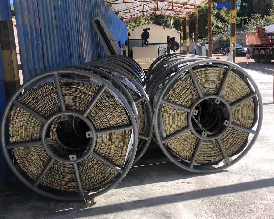 5、平行線拐角塔前后左右也不適合設定張力機,由于導線根據放線滑輪鋼筋錨固很不便捷。